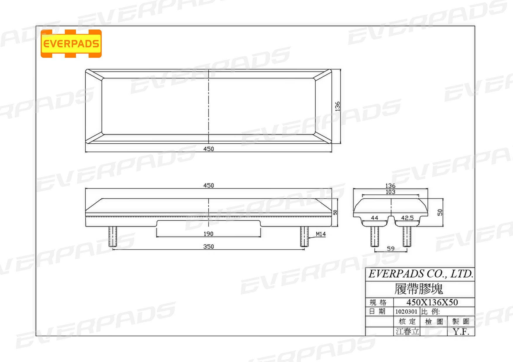 Rubber Track Pad 450*136*50M - 2010504014