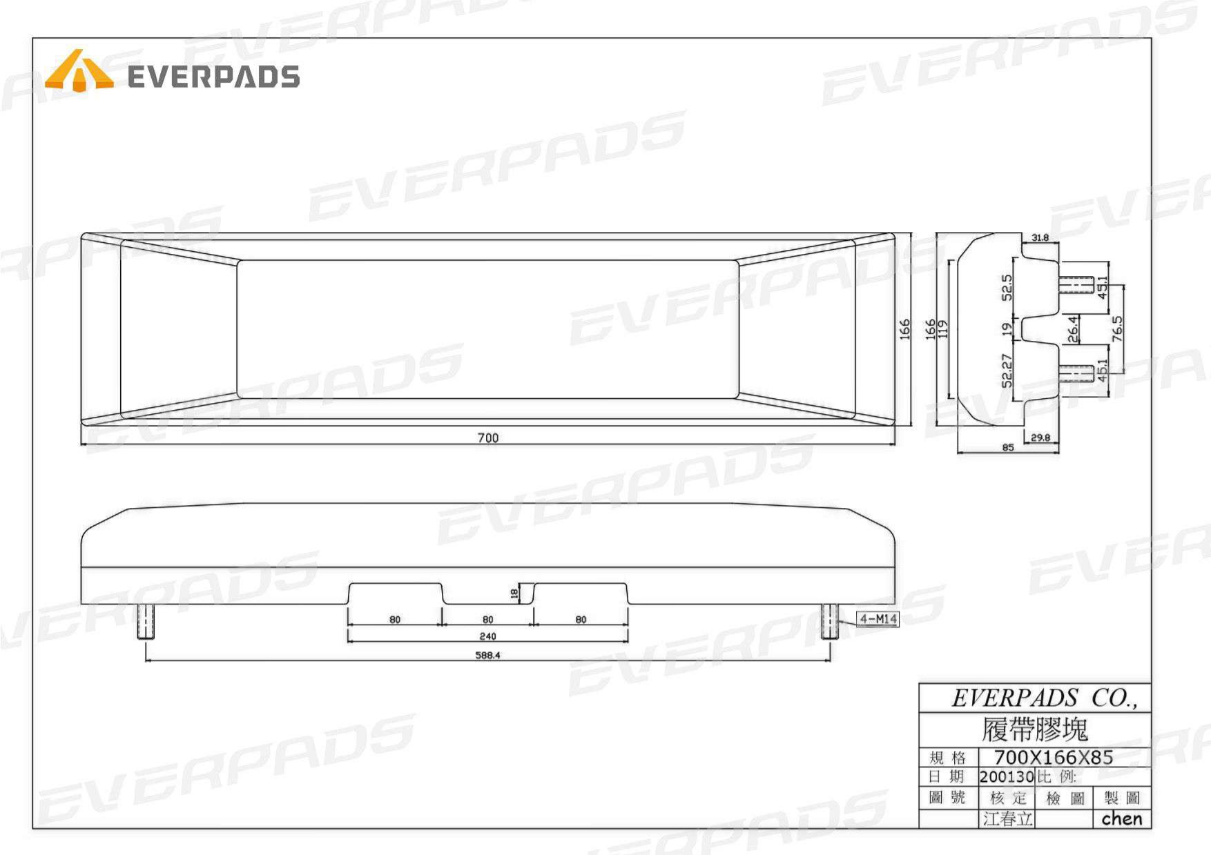 EVERPADS optimizes its track pad chamfer edge with a meticulous design, advancing the quality and steering agility to overcome rugged road surfaces.